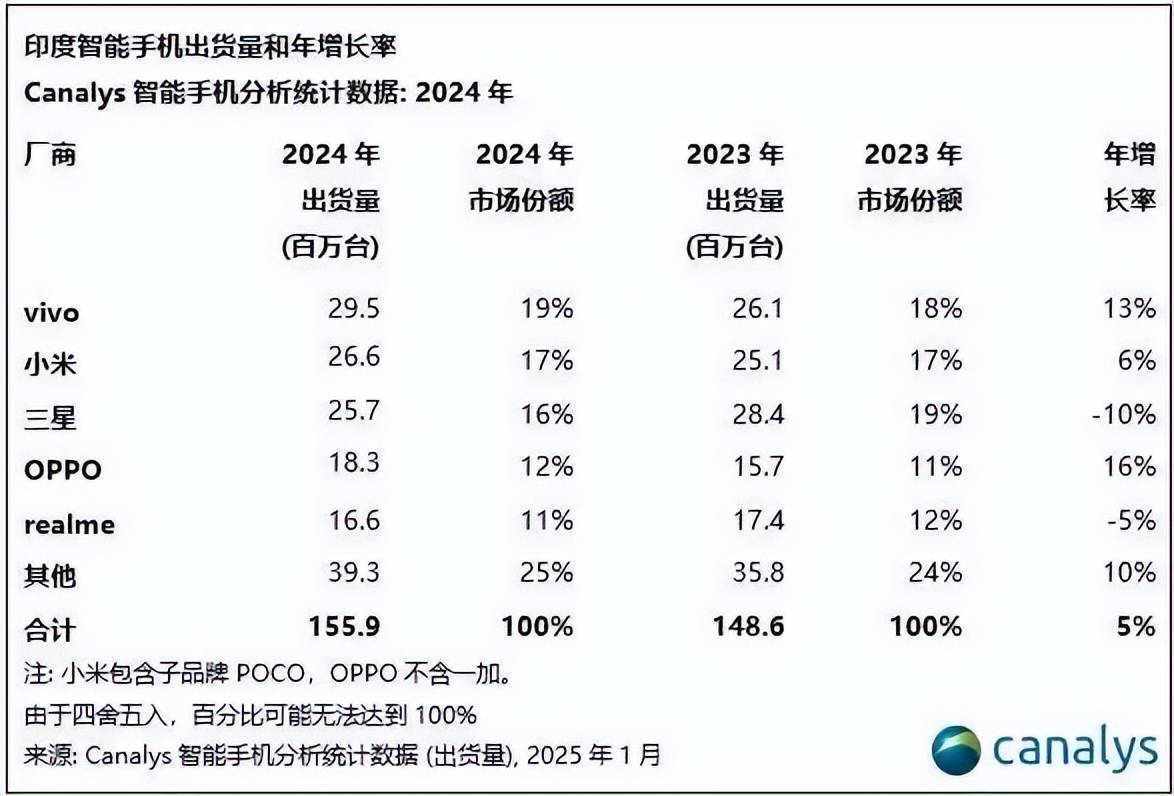 小米则选择了转战海外市场的战略。在国内市场出货量未能进入前五的情况下,小米凭借全球化的布局和IoT设备及生态的庞大优势,在全球市场取得了显著成绩。2024年,小米全球出货量达到1.7亿部,市占率13%,排名稳定在第三。小米在印度、欧洲、拉美等市场的表现尤为突出。